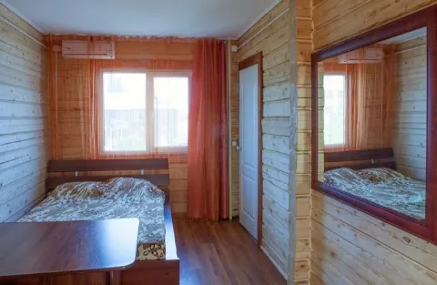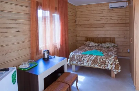 Номера расположены в новом корпусе из бруса сибирской сосны.В номере: кровать, шкаф для белья, стол, стулья, набор посуды, холодильник, кондиционер, ТВ.Площадь номера 13 - 15 кв.м.